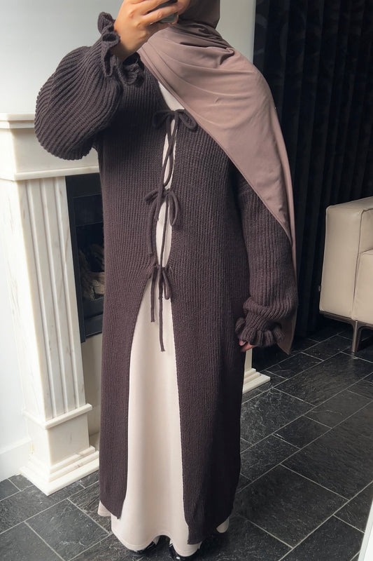 PRE ORDER - TAUPE BOW TIE ABAYA (WILL BE SHIPPED 03/11)