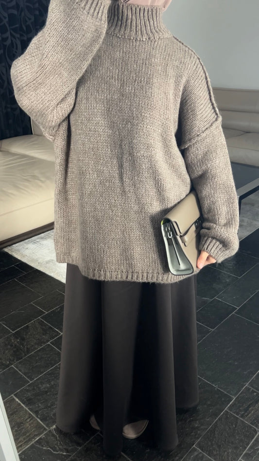 TAUPE CABLE KNIT SWEATER
