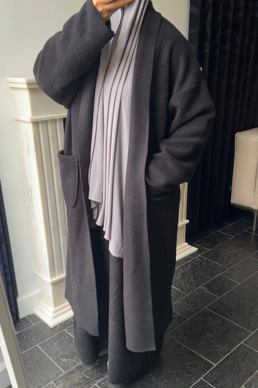 PRE ORDER - BLACK TEDDY ABAYA COAT (WILL BE SHIPPED 03/11)