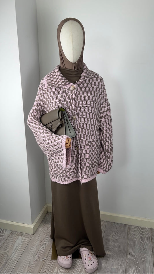 KNIT BUTTON CARDIGAN PINK