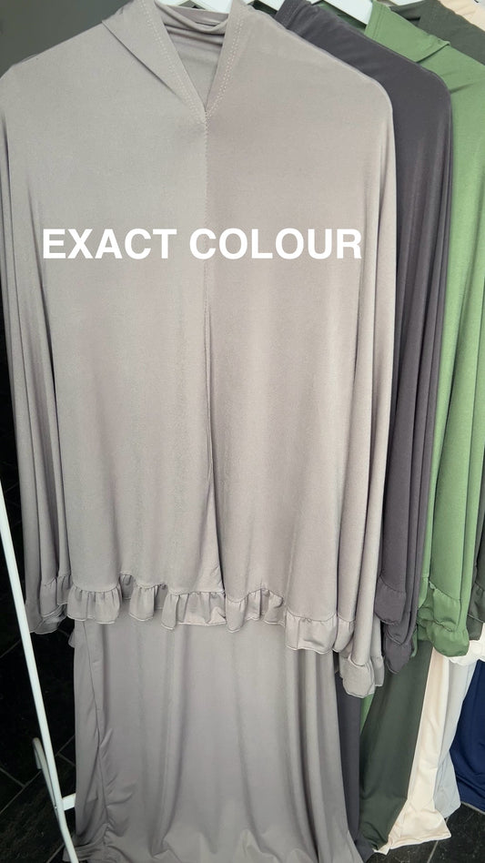 RUFFLE ABAYA KHIMAR SET PURPLE GREY