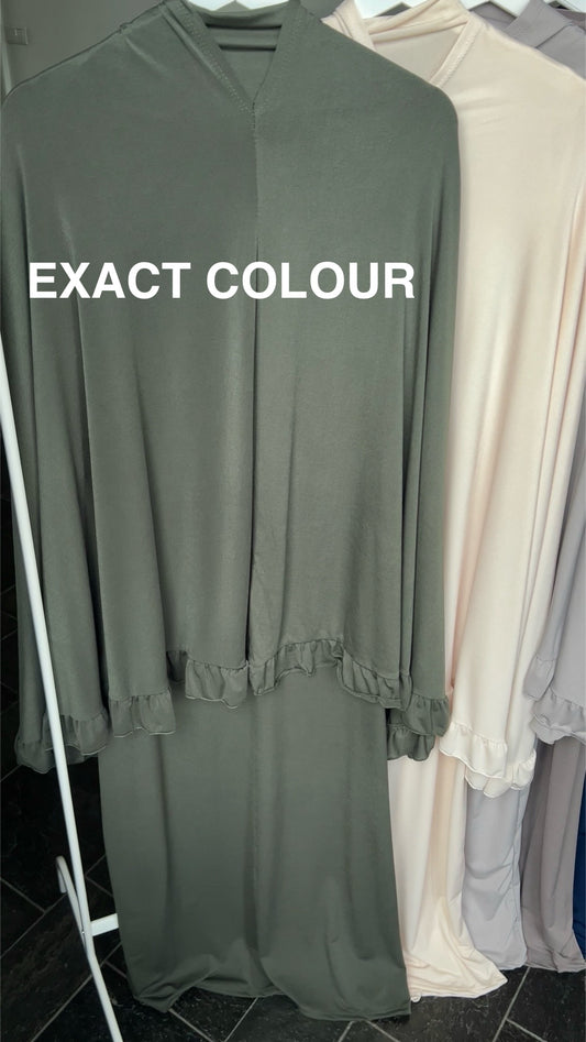 RUFFLE ABAYA KHIMAR SET DARK KHAKI