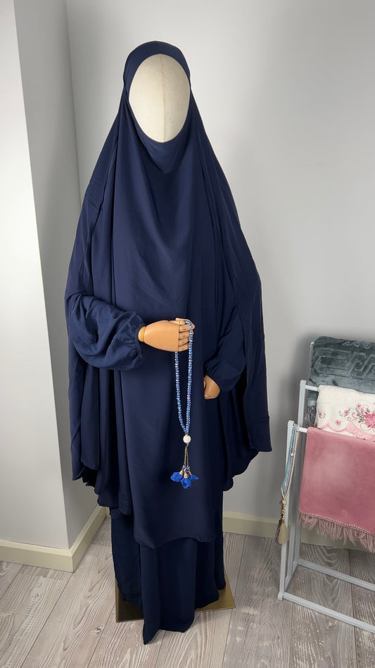 RUFFLE ABAYA KHIMAR SET NAVY