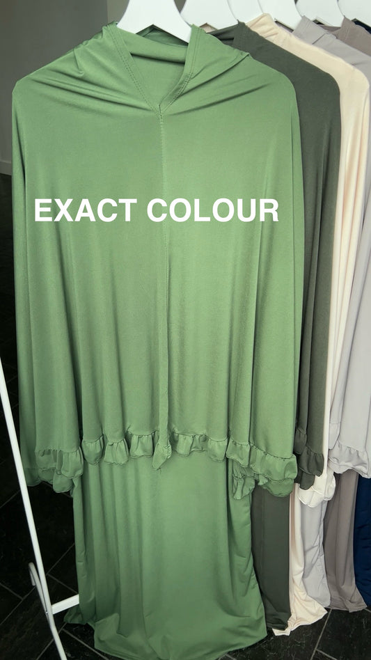 RUFFLE ABAYA KHIMAR SET APPLE GREEN
