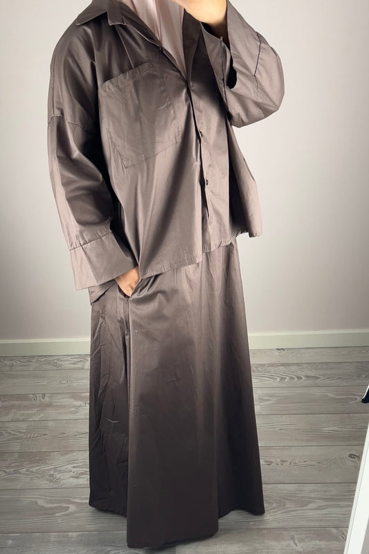 TAUPE COTTON SKIRT SET
