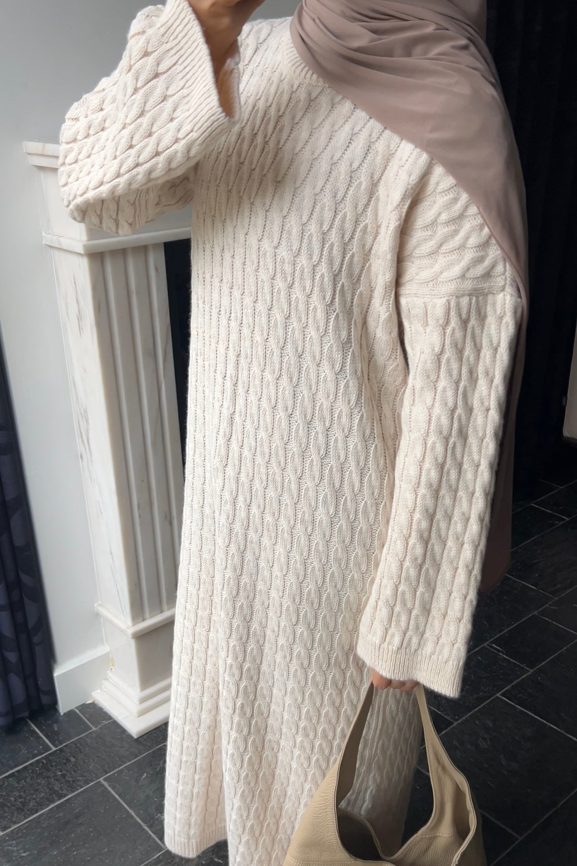 BEIGE CABLE DRESS