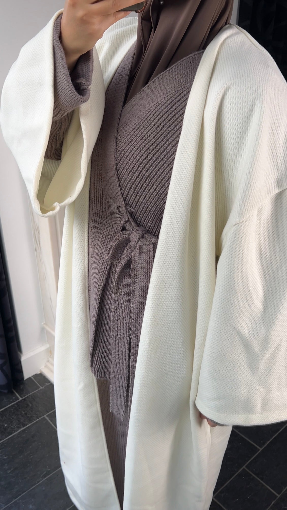 OFF-WHITE RIBBED ABAYA COAT
