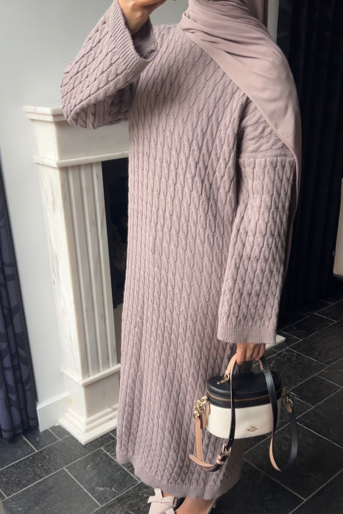 TAUPE CABLE DRESS