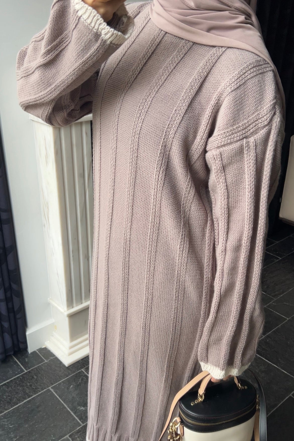 TAUPE LINE DRESS